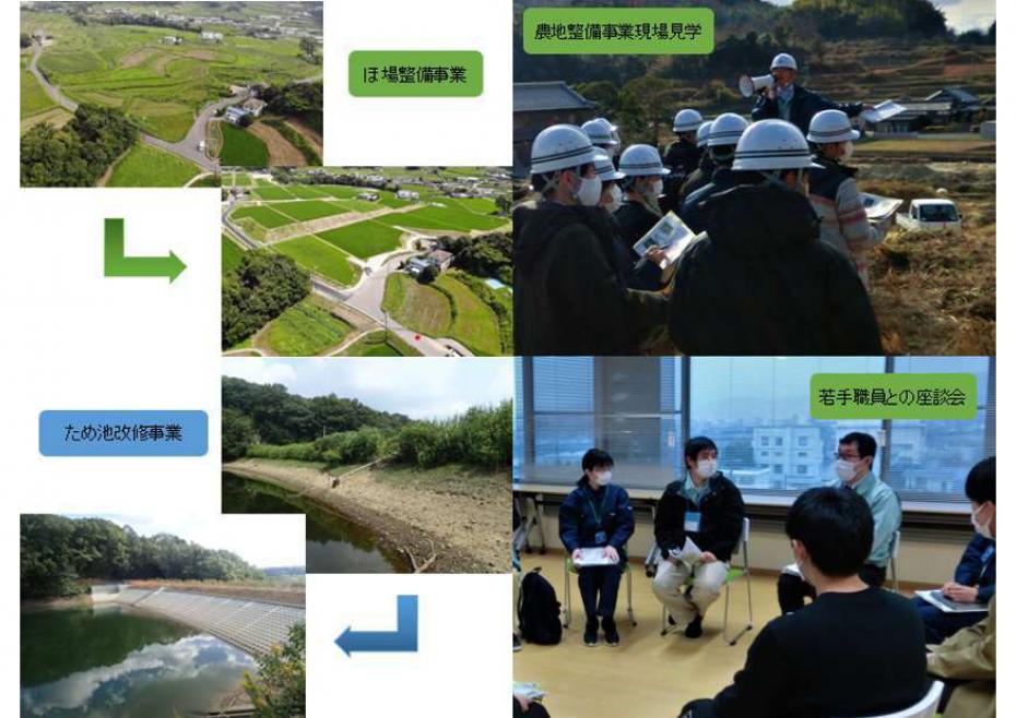 ため池・ほ場整備現場、職場見学、若手職員との交流など