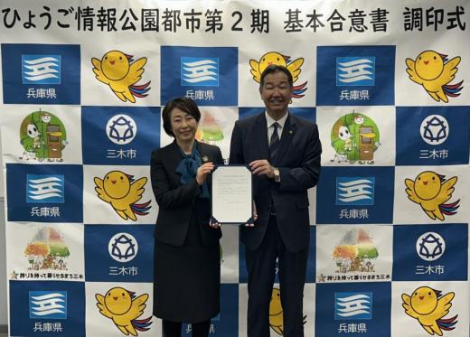 令和3年5月24日に、三木市が道路、上下水道、公園などの関連インフラ整備を行い、企業庁が産業用地の造成及び企業誘致、分譲を行う共同事業方式で事業を実施することとした基本合意書を締結し、検討を進めてきました。