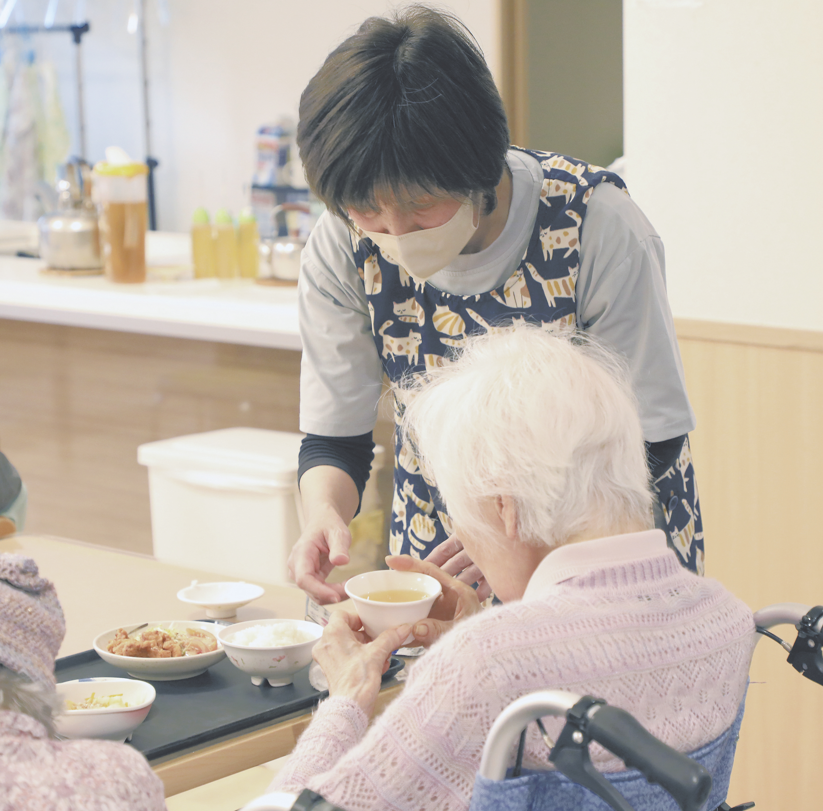 4年前に病気になり、フルタイムで働くのは難しいと感じていた時、ひょうごケア・アシスタントのことを知りました。近所の特別養護老人ホームが受け入れていたので応募し、2021(令和3)年10月から働き始めました。今は週3日、15時45分から18時45分まで、夕食の配膳・下膳や清掃などを担当しています。未経験で資格も持っていないので、役に立てるのか不安でしたが、できることはたくさんあります。入所者さんから「ありがとう」と笑顔で言ってもらえるとうれしいし、やりがいを感じます。