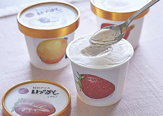 淡路島産の果実と牛乳を使ったアイスクリーム。淡路市の障害福祉サービス事業所「いづかしの杜」が製造しています。「いちじく」「びわのたね」「いちご」の3種があり、1個(140ml)300円。インターネットでも販売しています。