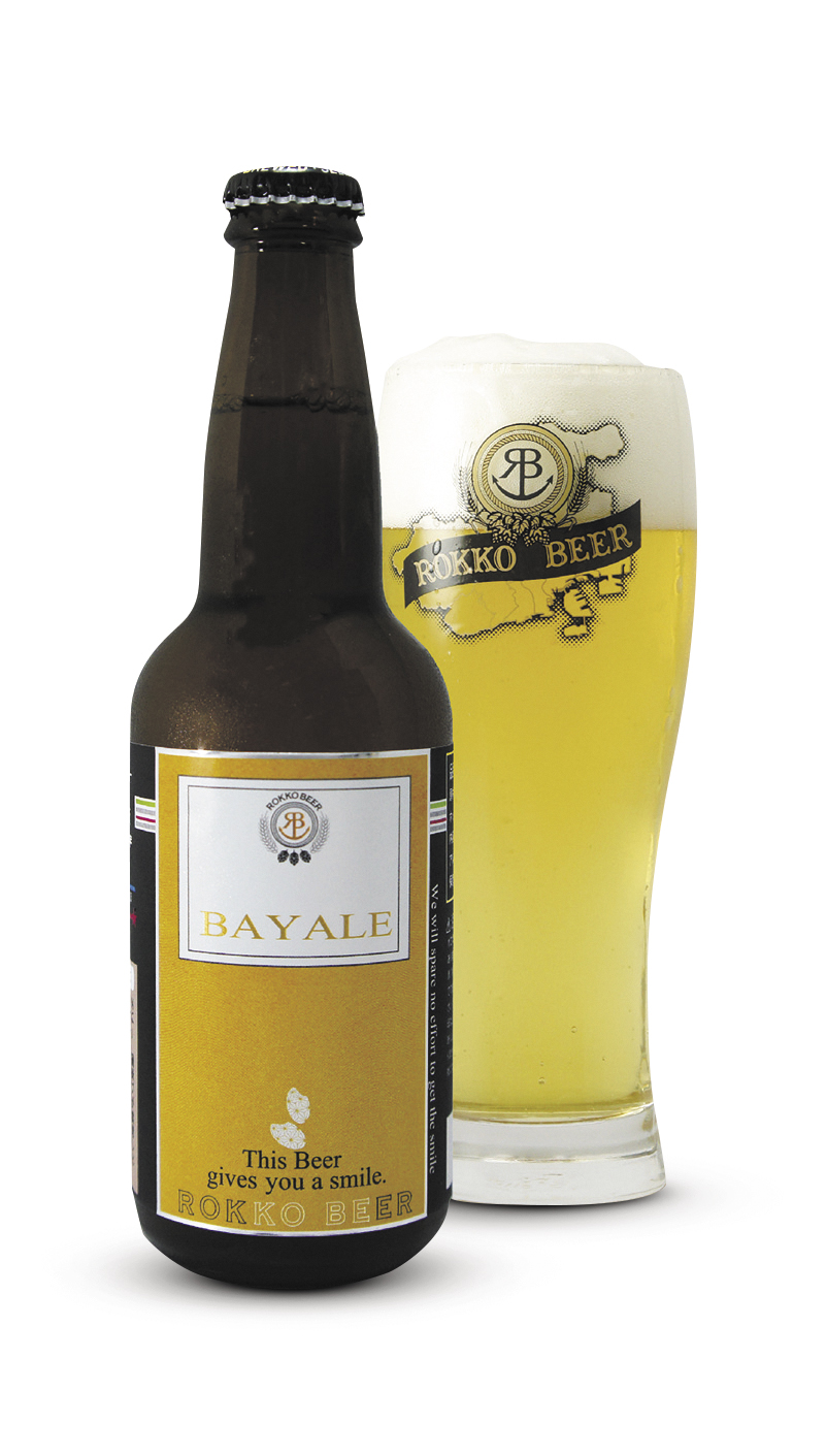 精米歩合50%以上の神戸産山田錦の芳醇(ほうじゅん)な風味と、ホップのかんきつ系の香りが溶け合う華やかな味わいです。1本(330ml)600円。