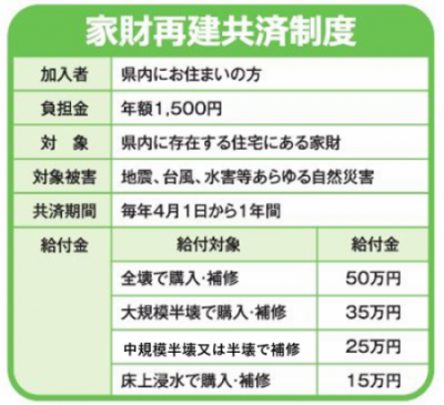 平成22年8月1日より、家財再建共済制度を開始しました。