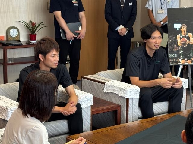 渋谷代表取締役社長は「子どもたちの無料招待等、地域行政とつながり活動ができた。そのようなことも評価され、B.LEAGUE ALL-STAR GAME 2028が開催されることにもつながった」と述べました。西村取締役副社長は「新しい選手も入るため、来シーズンは必ず優勝したい」と意欲を語りました。