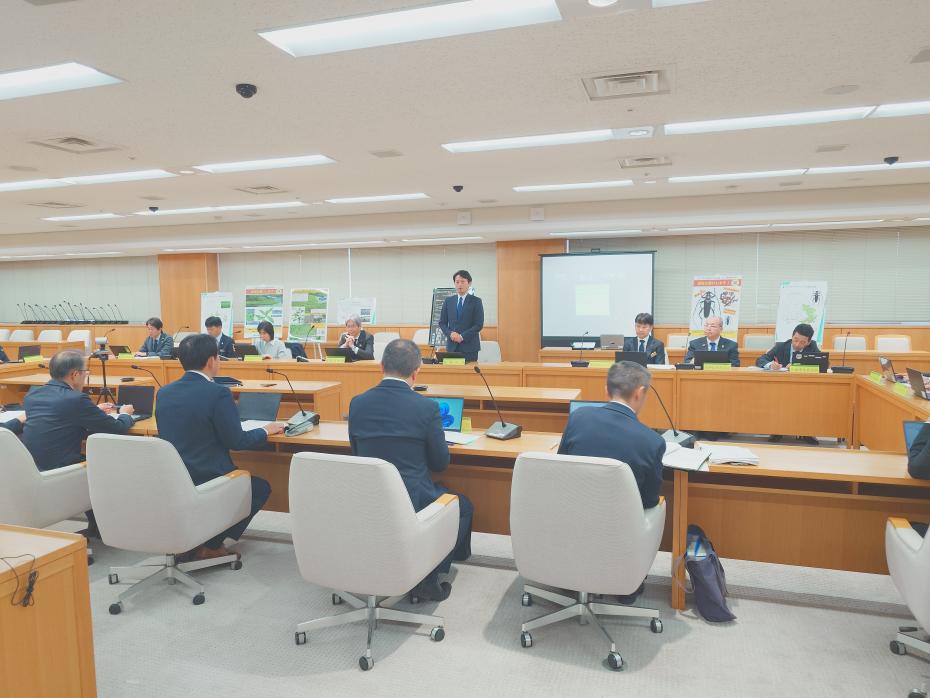 会議では、環境部自然鳥獣共生課より、第1回特定外来生物対策本部会議以降の、県内における「ナガエツルノゲイトウ」と「クビアカツヤカミキリ」の被害状況の共有、各地域における地域部会の開催状況について報告し、今後の取組案について協議しました。