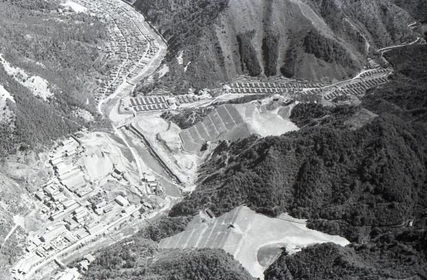 昭和48年(1973年)に閉山した生野銀山周辺の閉山前の様子を上空から撮影した写真。