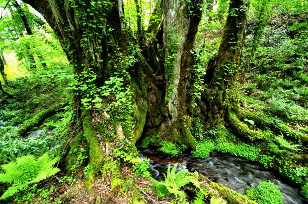 樹齢1000年以上といわれる同園のシンボル、和池の大カツラ