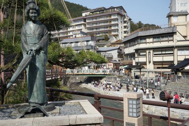 NHKドラマ「夢千代日記」の舞台となったことで「夢千代の里」として知られるようになった新温泉町。荒湯を見下ろす春来川のほとりにはドラマで夢千代を演じた吉永小百合さんをモデルにした夢千代像があり、広場には原作者の早坂暁氏をはじめ、出演者の吉永小百合さん、三田佳子さんなどの手形も設置されています。