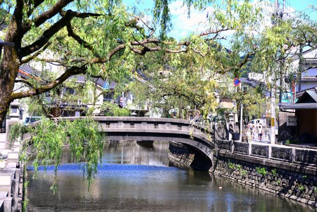 城崎温泉は1400年の歴史を誇る温泉街。大正14年(1925)の北丹大震災後、温泉街の中心を流れる円山川の支流、大谿川(おおたにがわ)には和風のデザインの鉄筋コンクリート造の太鼓橋がかけられ、このとき架けられた5つの橋が国指定の登録有形文化財に登録されています。