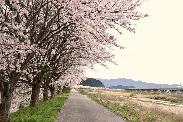 丹波市氷上町の加古川沿いには約5キロにわたって、およそ1,000本のソメイヨシノの桜並木が続きます。兵庫県は、平成3年度から12年にかけて瀬戸内海から日本海を結ぶ全長約170kmの河川沿いを5万本の桜でつなぐ『ふるさと桜づつみ回廊」』を整備しました。当時は若木だった桜がいまでは立派に成長し、桜の季節に訪れる人々の目を楽しませてくれます。