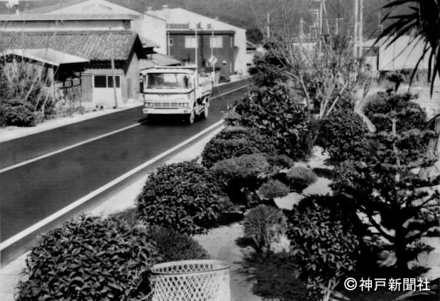 国道28号線沿いにあった1000本以上の黒松の並木「八木の並松(なんまつ)」は日本の代表的な景勝地として国の天然記念物に指定されていました。しかし道路整備や松枯れにより昭和55年、最後の1本が伐採され、のちに天然記念物指定解除なりました。写真は松に代わるいろんな花木が植え込まれた「八木の並松」の跡地。