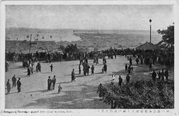 明治時代初頭、開園した諏訪山遊園の様子。神戸港や市街中心地を眺めるには絶好の地である。