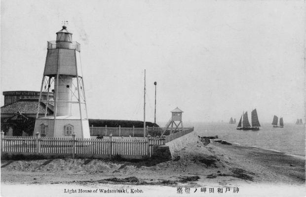 現存する最古の鉄製灯台である和田岬灯台。1963年に廃灯。現在は須磨海浜公園に移築されている。