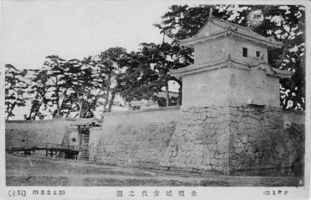 浅野長直の指示によって慶安元(1648)年から13年の歳月をかけて築かれた赤穂城。本丸庭園と二之丸庭園は国の名勝に指定され、平成18年には『日本100名城』に選ばれました。写真には三の丸大手門(高麗門)と二層隅櫓が写っています。