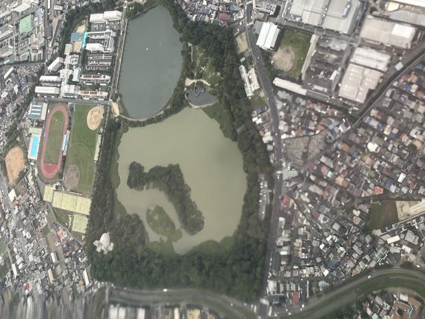 昆陽池公園は、都市部では珍しい野鳥のオアシス。関西屈指の渡り鳥の飛来地で、秋から冬にかけてはカモなど多くの水鳥を近くで見ることができます。伊丹空港発の飛行機から離陸直後に昆陽池公園を見下ろすと、池の中に日本列島の形をした島が確認できます。