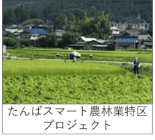 ブランド農産物、丹波産木材の生産・維持拡大に向け、効率化、省力・軽労化を進めるスマート技術の確立を図るとともに、技術活用の仕組みづくり(協議会の結成、規制緩和の活用等)を進め、域内へのスマート農林業の普及拡大をめざします。