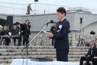 齋藤知事は、「戦争の悲惨さを風化させることなく継承し、平和で安全・安心な社会の実現に向けて、一層の努力を重ねていくことを固く誓います」と述べた。(10月21日、南あわじ市)