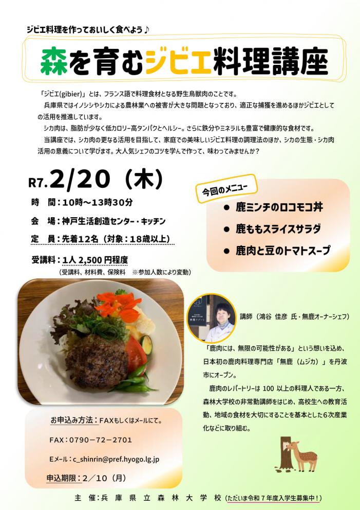ジビエ料理教室を開催いたします♪是非ご参加ください。