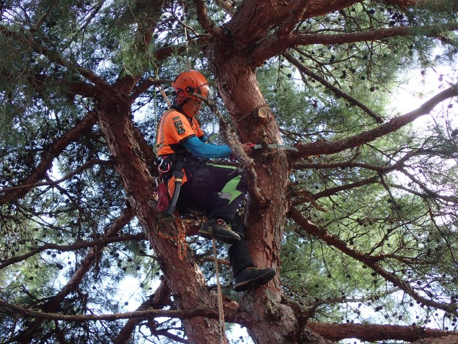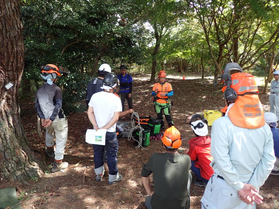 近年、人家裏や道路沿いなどの特殊な条件下で大木を伐ることが増えてきています。このような時に安全に作業できる一つの手法として「樹上作業」があります。本講座は樹上作業の知識、経験を深めていただく講座となっており「樹上作業」の研修を受講できる貴重な機会となります。