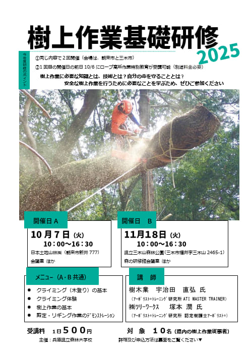 【定員(AB共通)】10名(県内の樹上作業従事者)