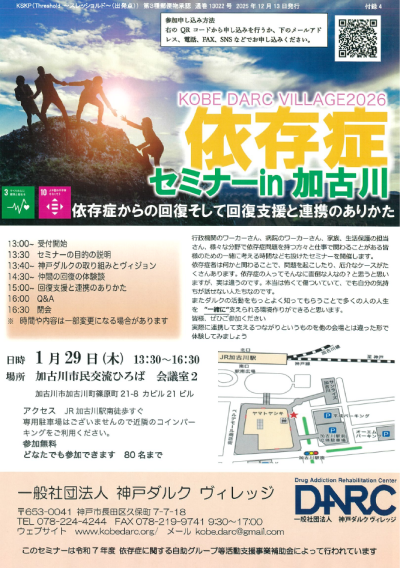 依存症セミナーin加古川 依存症からの回復そして回復支援と連携のありかた