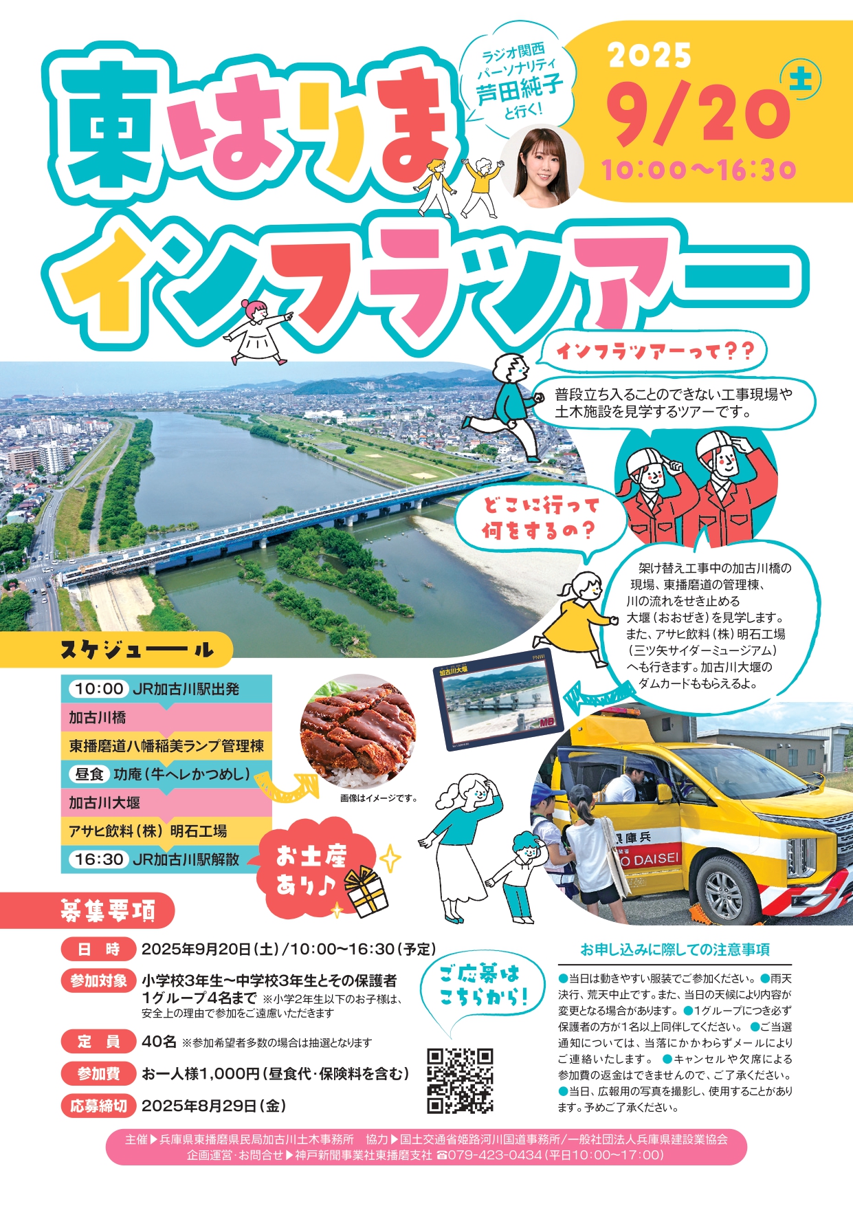 現在架け替え工事中である国道2号加古川橋の現場、東播磨道の管理棟、加古川大堰(おおぜき)を見学して、日常生活にかかせない道路やダムの役割について楽しく学んでみませんか?