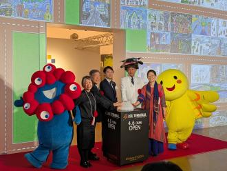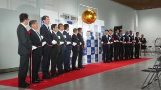 〔画像:1枚目・テープカット、2枚目・くす玉開披のようす〕【場所:神戸空港第2ターミナル(神戸市中央区)】