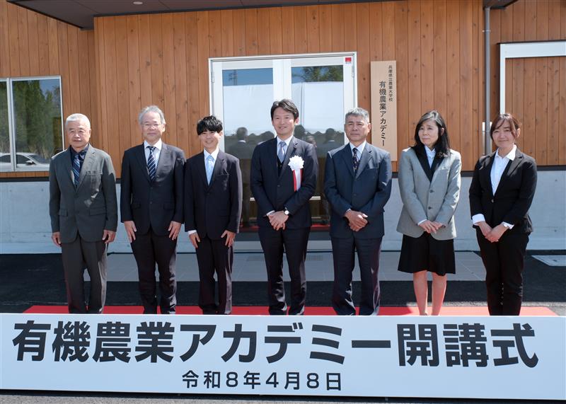有機農業の担い手を育成するため、県内の有機農業者等と連携し、実践を通して学ぶ課程を県立農業大学校に開設。齋藤知事は「本アカデミーでは栽培の計画・管理から収穫・販売に至るまで現場で学ぶことができる。将来の就農を見据え、学生の皆さんが大きく成長されることを期待する」と述べた。(4月8日、加西市)