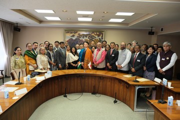 本県と友好提携を締結しているインド・グジャラート州からの訪問団が齋藤知事を表敬。知事は、「県内におけるインドビジネスセミナーや、本県私立学校のグジャラート州への進出など、経済や文化の交流が進んでいる。今後も双方の発展に寄与するべく、交流を一層活発化したい」と述べた。(9月10日、県庁)