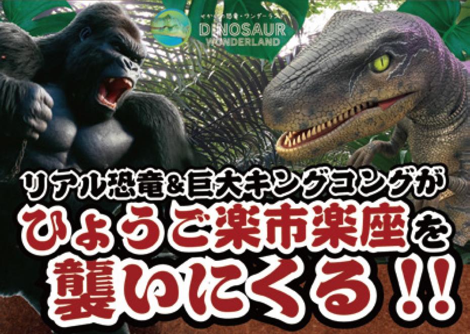 リアルな恐竜が会場にやってくる!?/せかいの恐竜ワンダーランド(外部サイトへリンク) リアルな恐竜や体験3メートルのキングコング等、大迫力なキャラクターがひょうご楽市楽座に襲来!? |