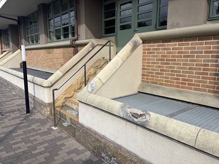 | 御影公会堂 | 御影公会堂機銃掃射痕1 |