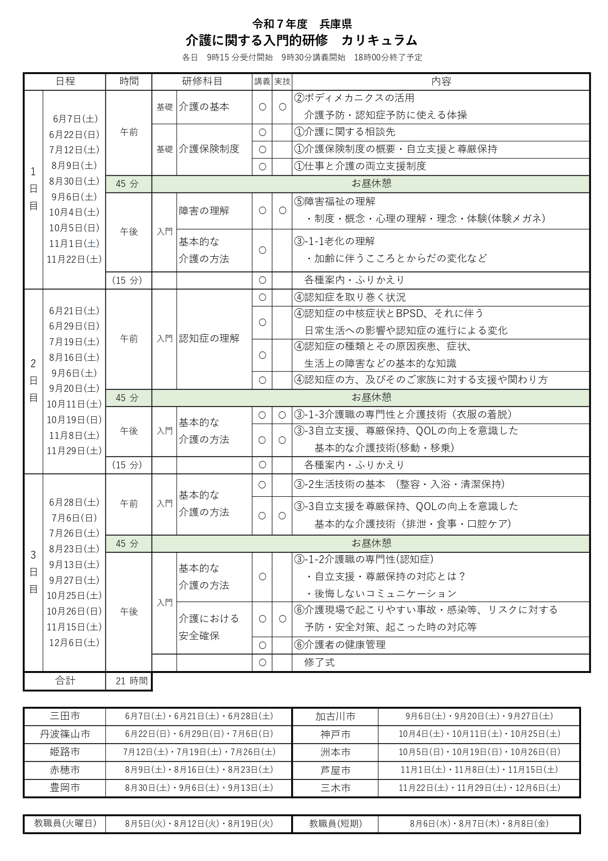 介護分野で就労経験がなく介護に関心のある方や、介護の仕事に興味のある方等を対象に、介護に関する基本的な知識や技術を学ぶ「介護に関する入門的研修」を県内各地域で開催します。