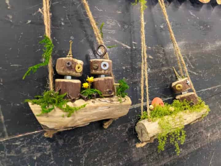 木材の暖かさ、ロボットの無機質さ、ほのぼのとした情景、心の中の哀しさ等 シュールな作品