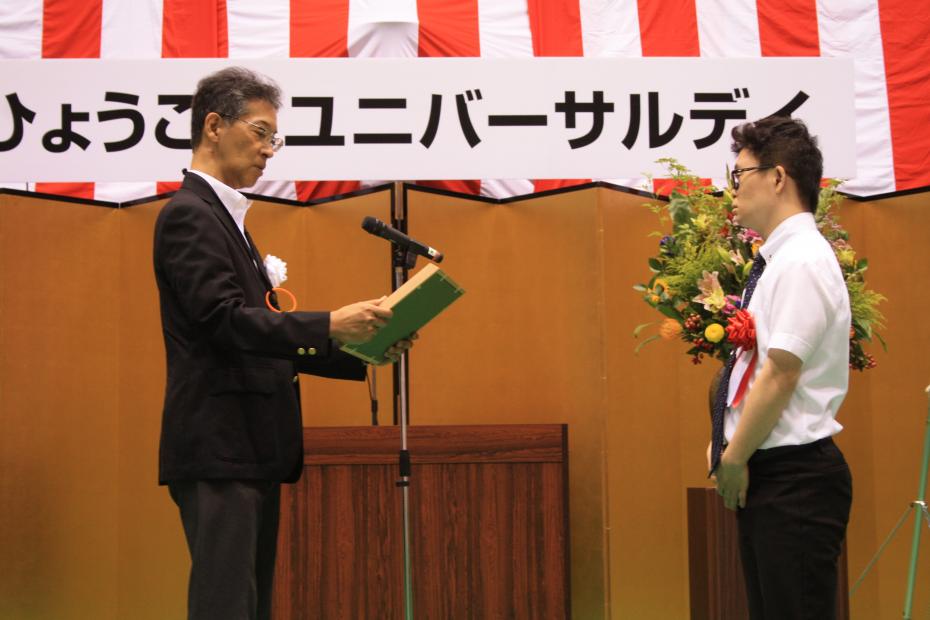 令和7年8月9日(土曜日)、尼崎市記念公園ベイコム総合体育館サブアリーナで開催された「ひょうご・ユニバーサルデイ」の中で、令和7年度ひょうごユニバーサル社会づくり賞の贈呈式を行いました。この度、多田駿介さん(猪名川町)、音遊びの会(神戸市)、放課後等デイサービスるび(神戸市)の皆さんが「知事賞」に輝きました。