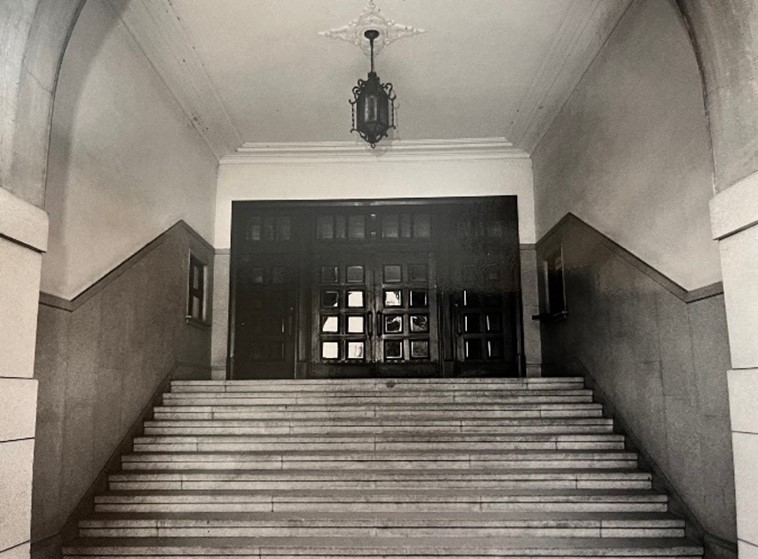 現在、壁の中の赤レンガを見ることはできませんが、改築時に撤去した赤レンガを東庭園のベンチとして再利用しており、創建当時の外壁の面影を感じていただくことができます。