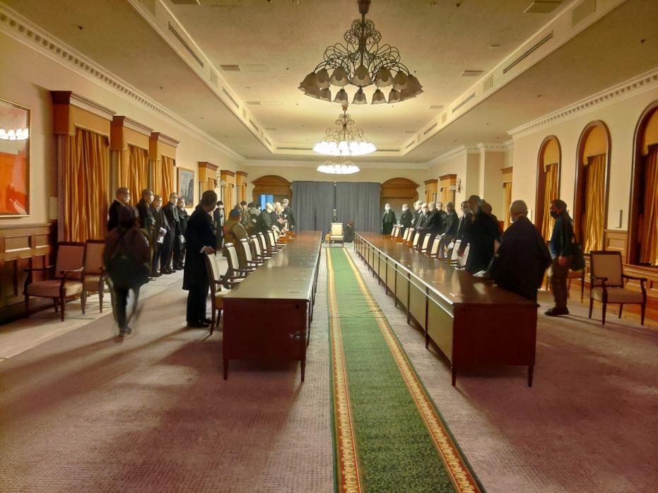 <大会議室>絨毯には兵庫県花「のじぎく」