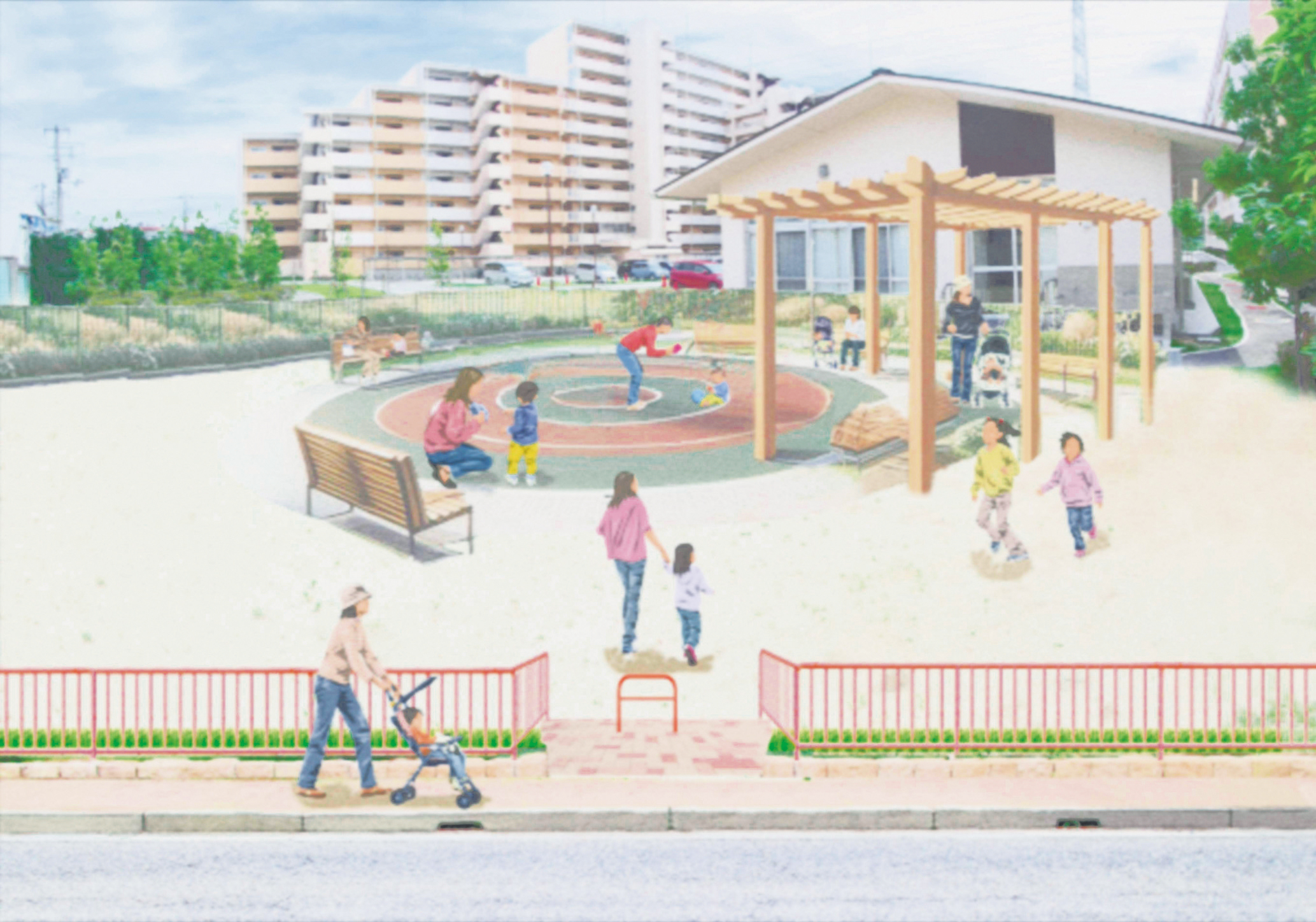 日よけやベンチなど子育て世帯のニーズが高い施設を整備。