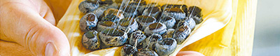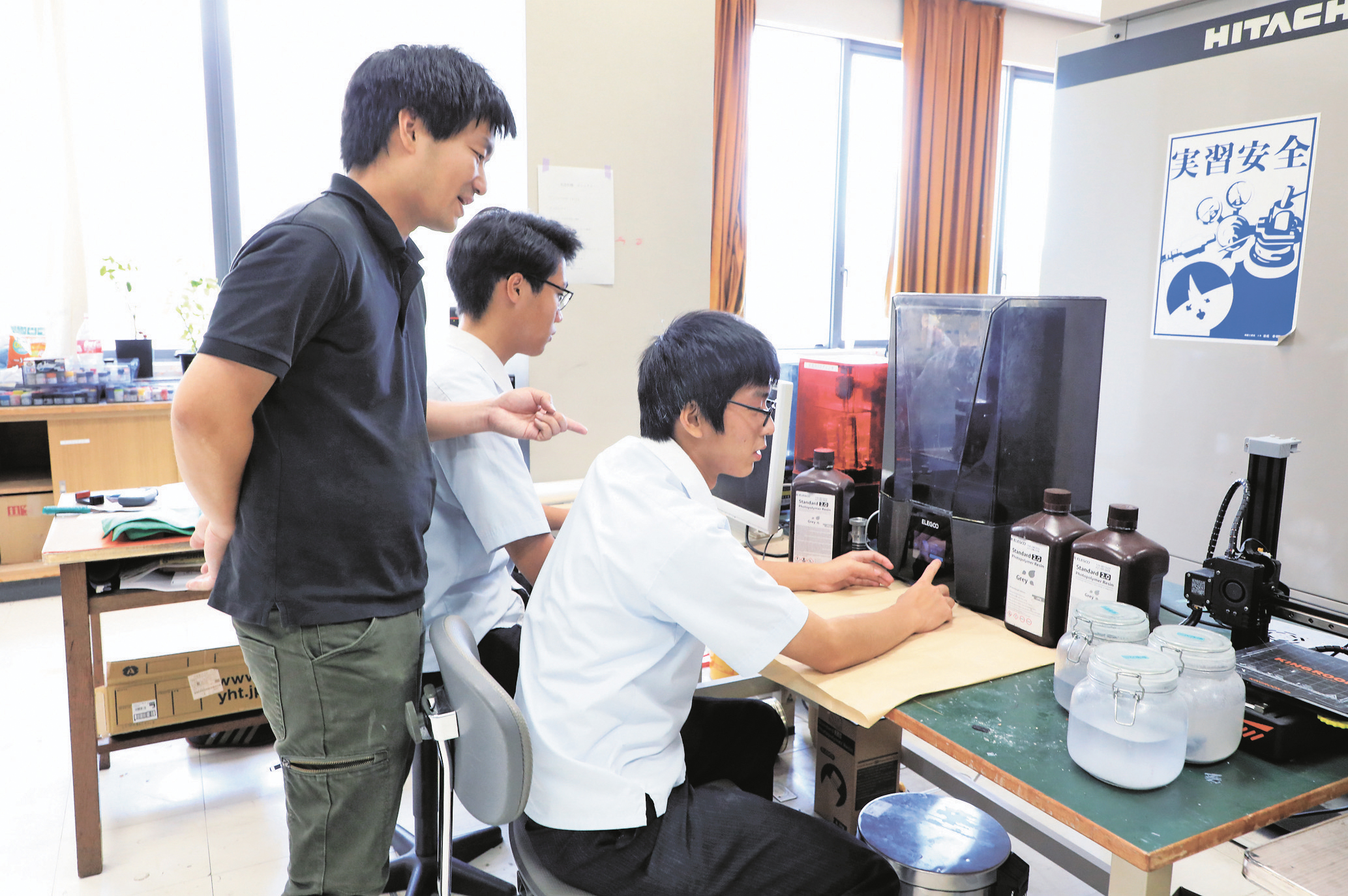 県立篠山産業高校の機械研究部では丹波篠山市から依頼を受け、「篠山まるごと丼」の注文客にプレゼントする丼のミニチュアとロゴ入りキーホルダーを製作しています。ミニチュアは3Dプリンターで直径2.5cmの器を造形し、米や具はシリコン型を使って樹脂粘土で成形。米の型は運動場の砂利で凹凸をつけて米粒を表現するなど、随所に部員たちの工夫が光ります。キーホルダーはアクリル板を重ね合わせレーザー加工で仕上げます。自分たちの技術や知識を地域貢献に生かせることにやりがいを感じ、精力的に作業に励んでいます。(県立篠山産業高校教諭 中尾義則さん)