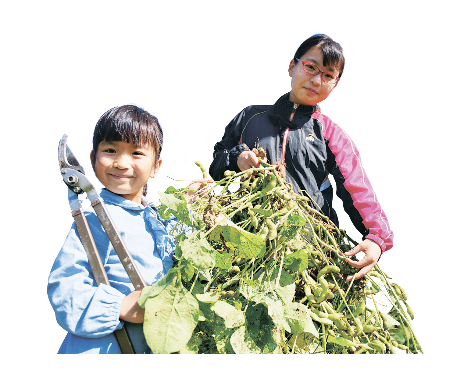 ※5月~6月は田植え体験、7月~8月は茶豆系統の枝豆、デカンショ豆狩りを実施