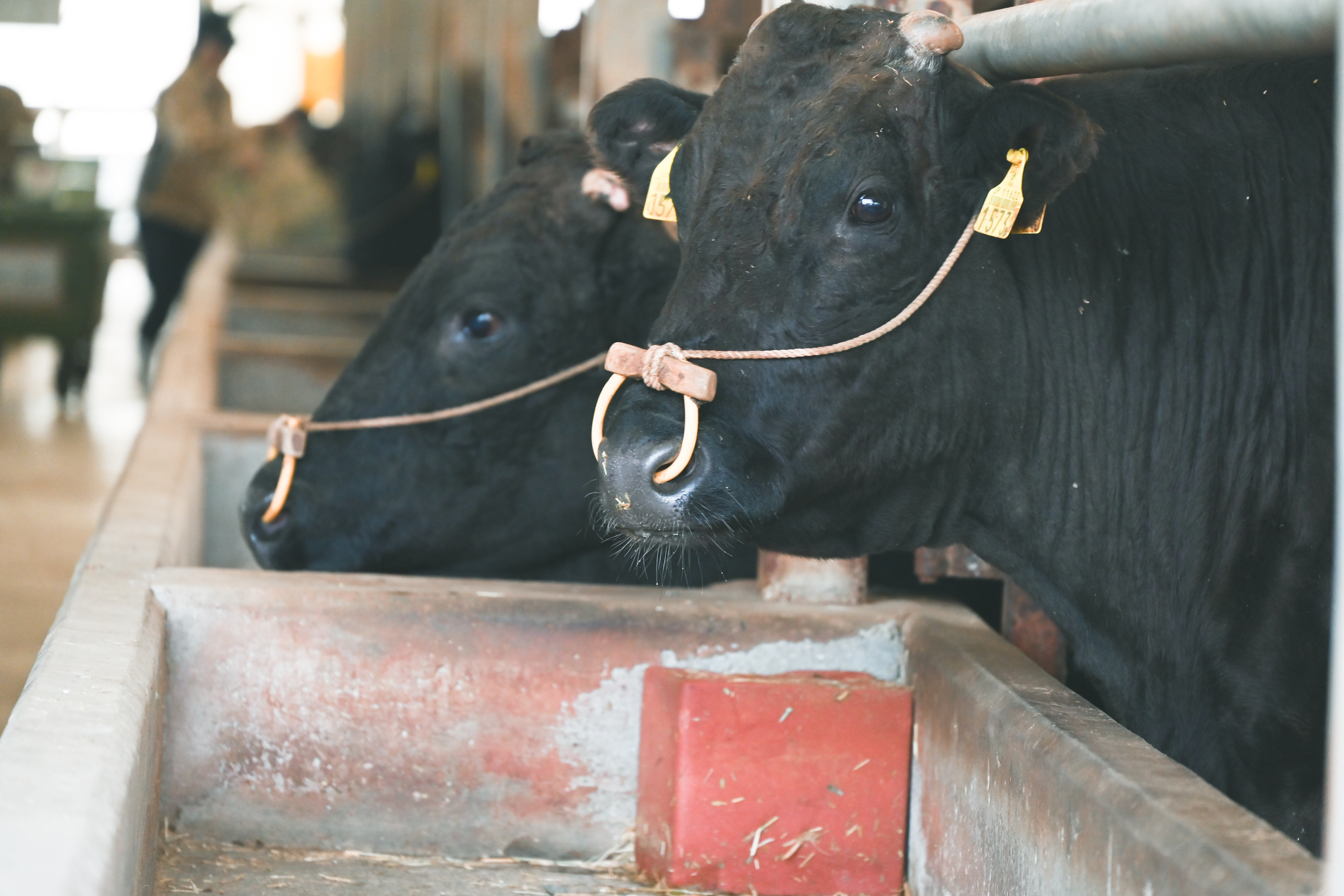 - 繁殖牛と肥育牛、計55頭の牛がいます。