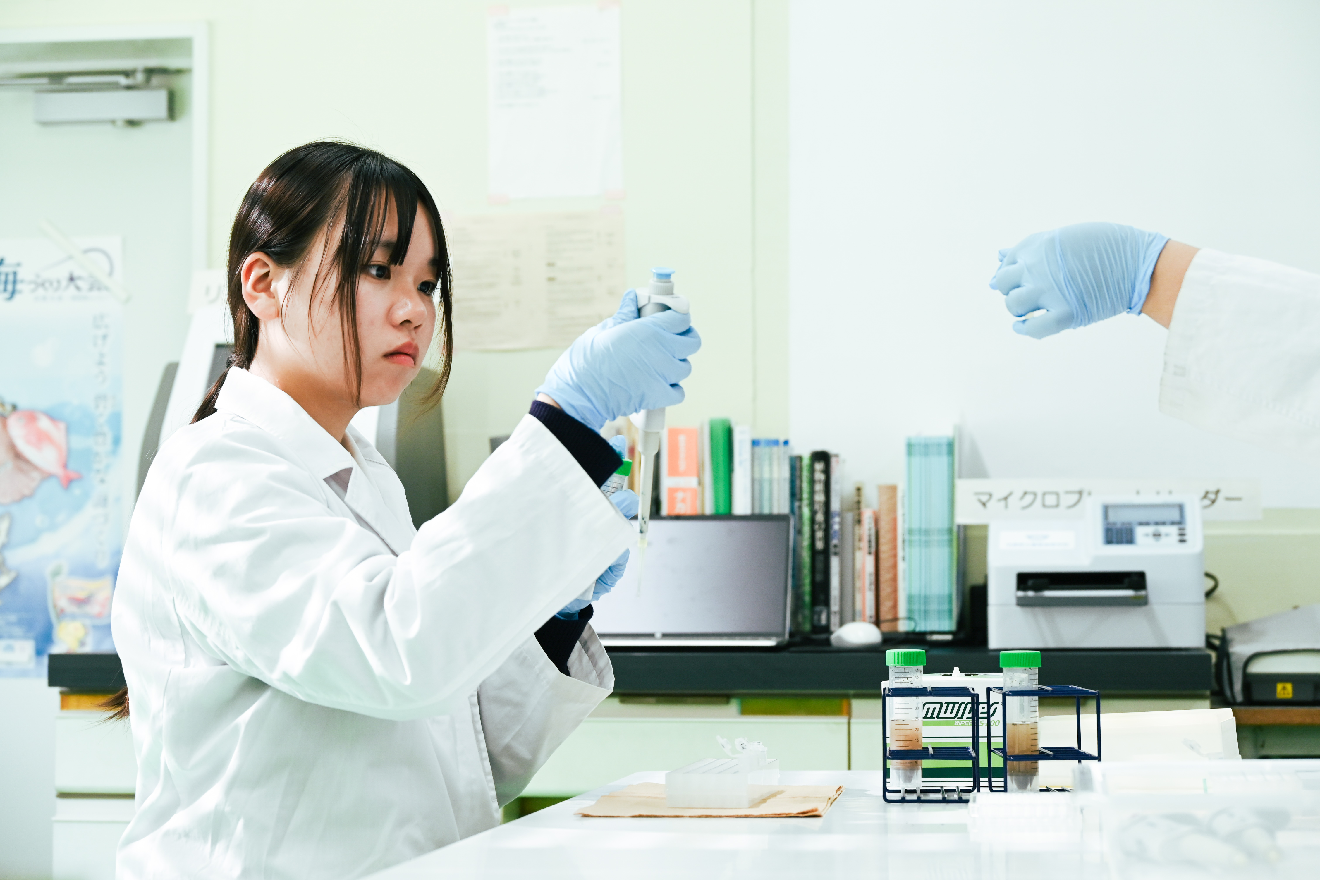 - 2年間かけて海洋生物の飼育管理法、生物調査や分析法などを学びます。