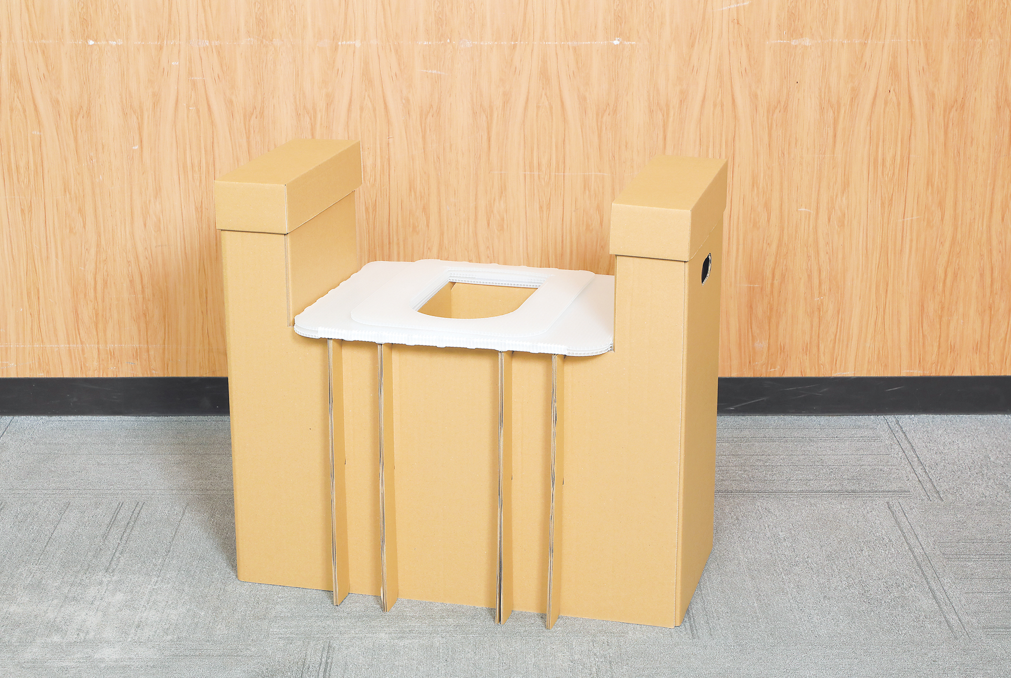 便座部分をプラスチック段ボールにした水に強いバージョンも。防災イベントにも積極的に出展し、PRしています。