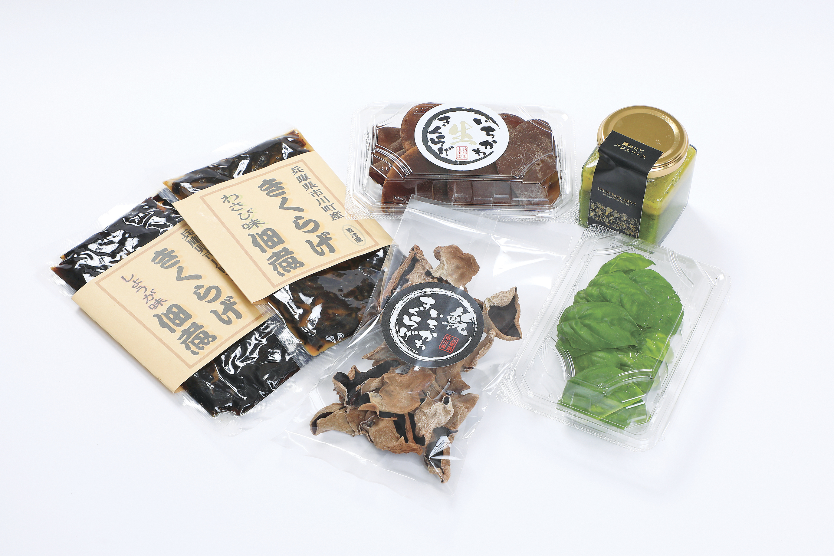 メロン以外は主に加工品に。バジルソース(右上)はふるさと納税の返礼品としても人気です。