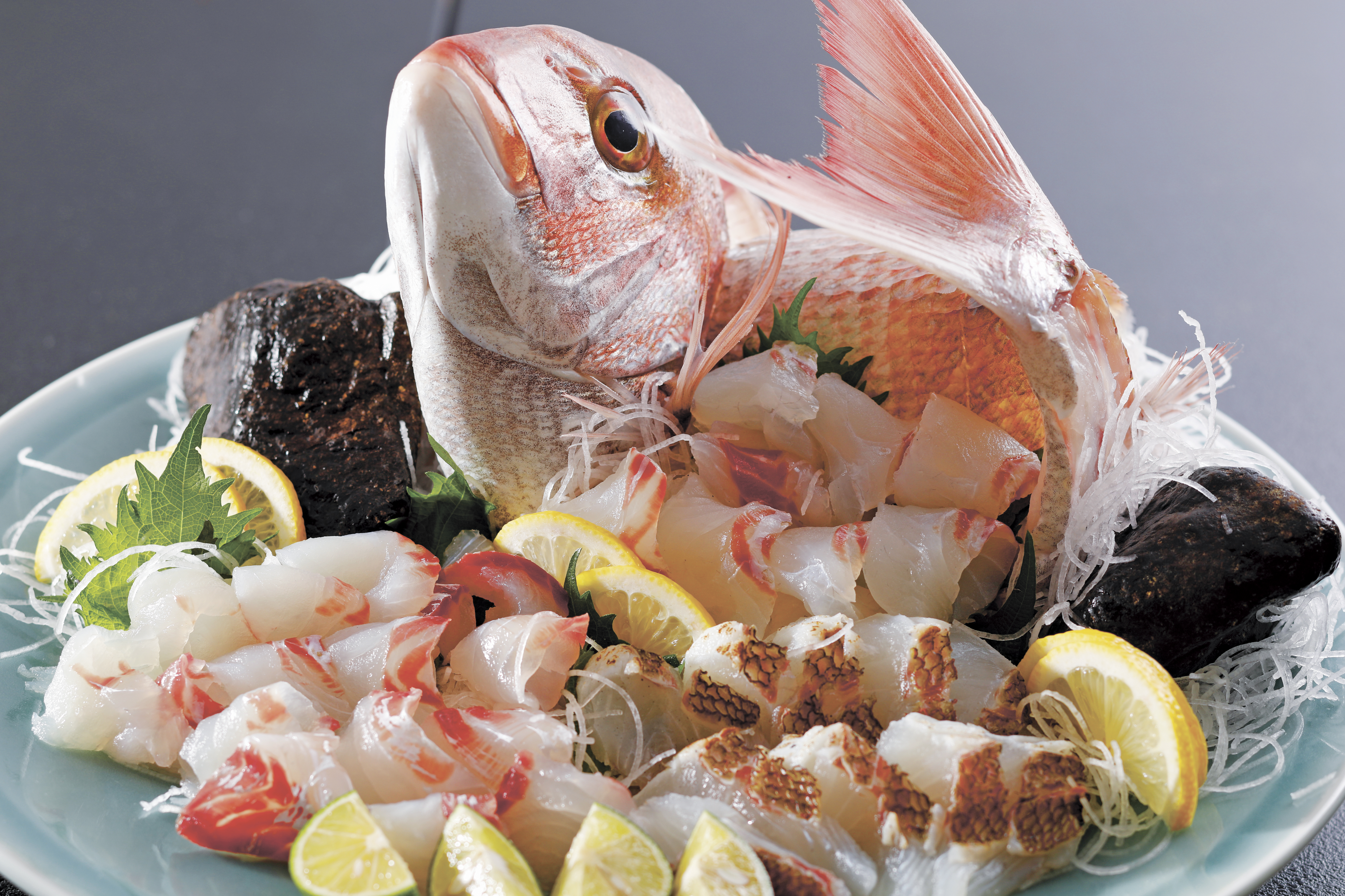3つの海峡に囲まれた淡路島の周辺海域は昔から鯛の好漁場で、現在も島内17の全漁業協同組合で漁が行われています。2021(令和3)年には島で水揚げされた天然真鯛を「淡路島えびす鯛」としてブランド化し、素材を生かしたバラエティー豊かな鯛料理を宿や飲食店約50カ所で提供中。春先は体の色がピンクに染まることから「桜鯛」と呼ばれます。(食のブランド「淡路島」推進協議会)