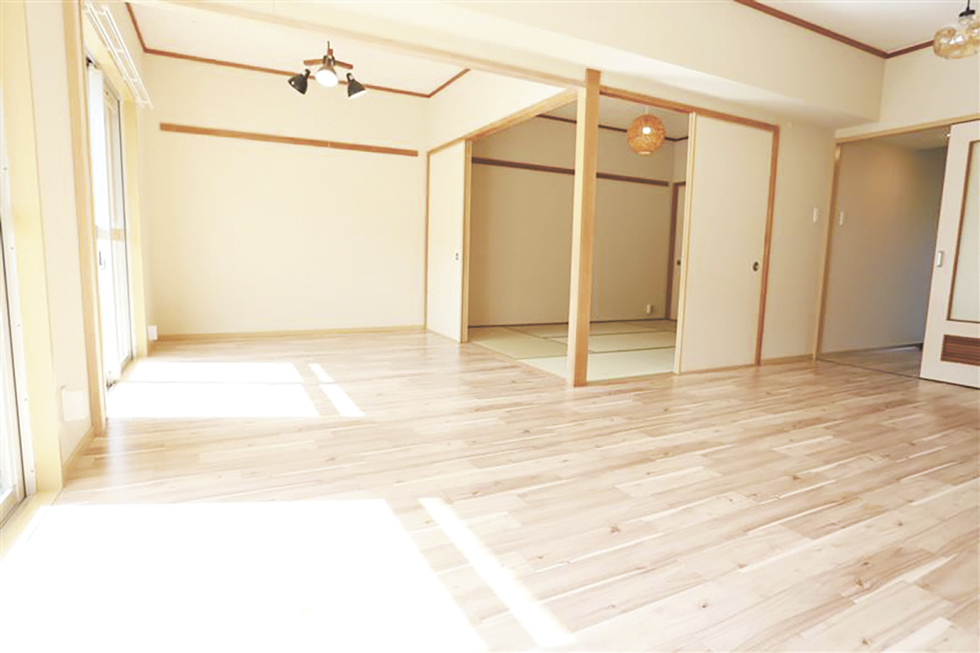 明るく開放的で、家族の様子も分かりやすいLDK化など、子育てしやすい住宅にリノベーション(県営尼崎大庄高層住宅)。