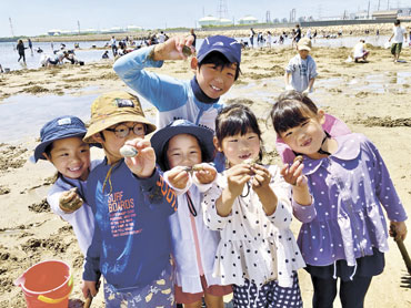 姫路市の白浜海岸では昨年、8年ぶりに潮干狩りを再開し、短期間にもかかわらず4,000人を超える来場者でにぎわいました。ここで生まれる笑顔やにぎわいを地域に根付く風景として未来へつないでいきたいとの思いから、今年は全国的にも珍しい、秋まで楽しめるロングラン開催に挑戦しています。また、5月16日(土曜日)からは、全ての人に開かれた海を目指したユニバーサル潮干狩り(予約制)として、水陸両用アウトドア車椅子や砂浜移動用のマットなどをそろえ、個々の障害に合わせてサポートします。パワーアップした白浜海岸に、ぜひお越しください。(姫路市漁業協同組合白浜支所潮干狩り部会)