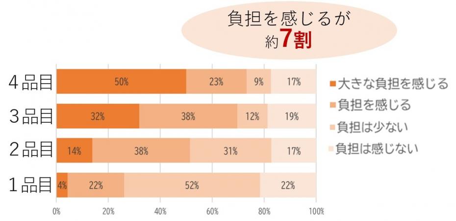 食物アレルギー品目数と個別食提供時の負担感の状況 |