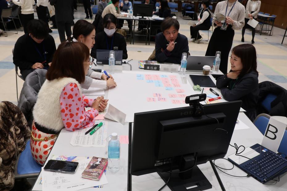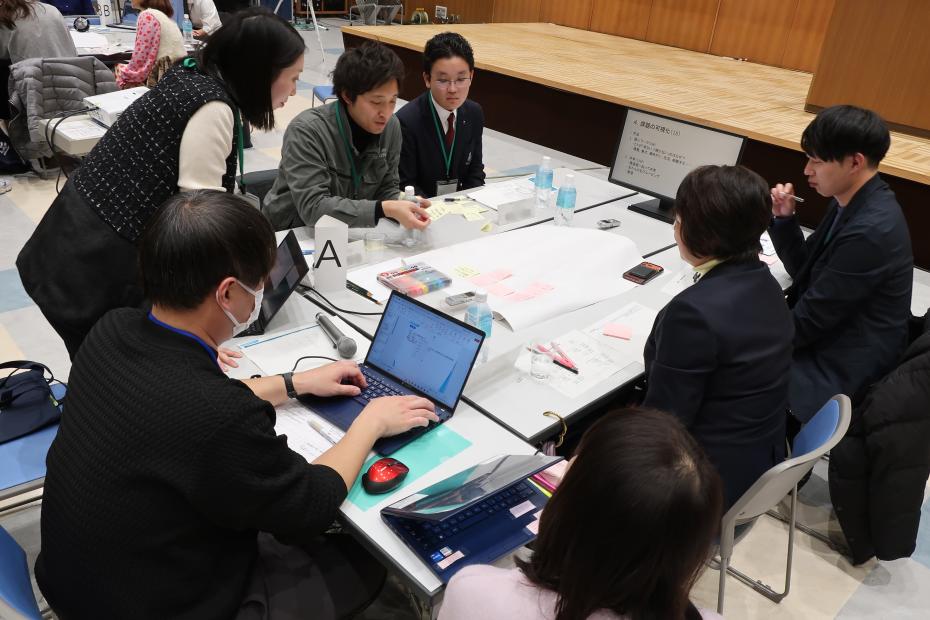 テーマごとにA~Dのグループに分かれ、地域の課題や課題解決に向けたアイデアについて話し合いました。