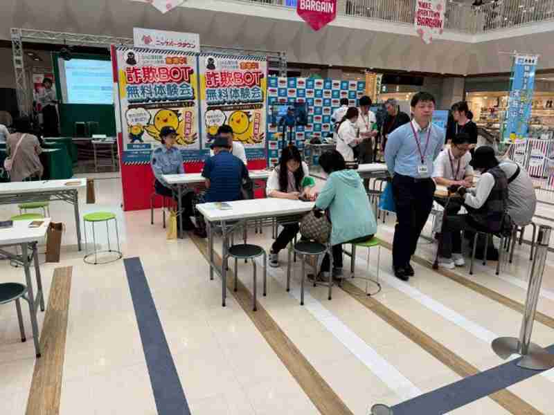 - 内容:兵庫警察署とイオンモール神戸南は、特殊詐欺被害防止に向けた協定締結式を実施しました。これにあわせて兵庫県では、同モール1階「うまいちコート」にて、SNS型投資・ロマンス詐欺への対策として、LINEBotを活用した無料体験会を実施しました。
