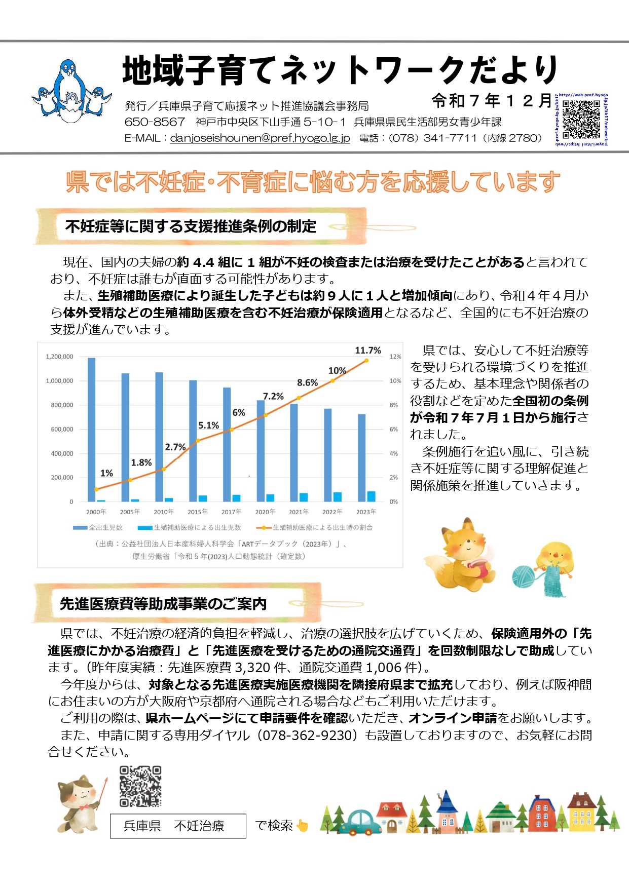 兵庫県の子育て支援事業の紹介や、子育て応援ネット・まちの子育てひろばの活動の様子、こどもの健康コラムなどを掲載した「地域子育てネットワークだより」を偶数月に発行しています。