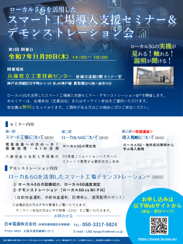 ローカル5Gを活用したスマート工場導入支援セミナー及びデモンストレーション会を開催しています。